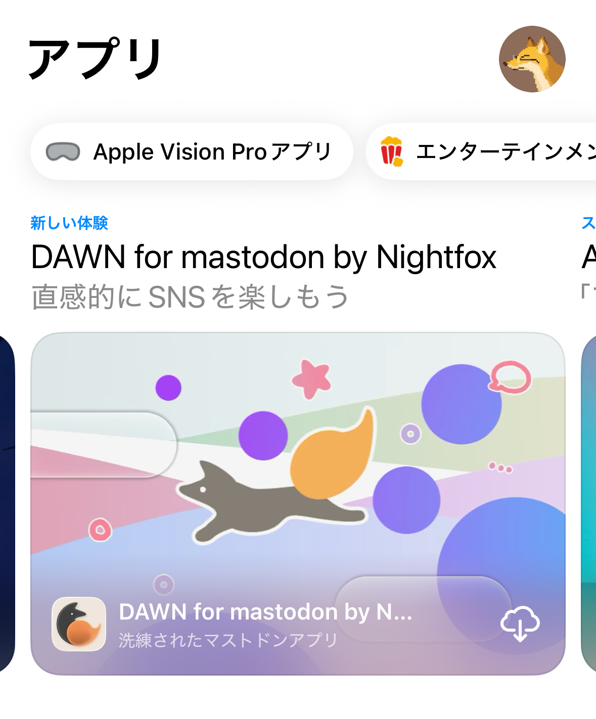 DAWN for MastodonがAppStoreでアプリタブフィーチャーされました。